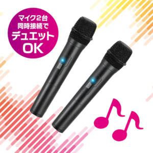 USBレシーバーによる無線接続で、コードを気にせずカラオケを楽しめるワイヤレスマイクです。2本接続すればデュエットにも対応し、家族や友人と一緒に盛り上がることができます。