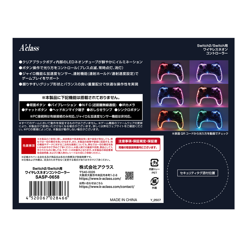 Switch2/Switch用 ワイヤレスネオンコントローラー