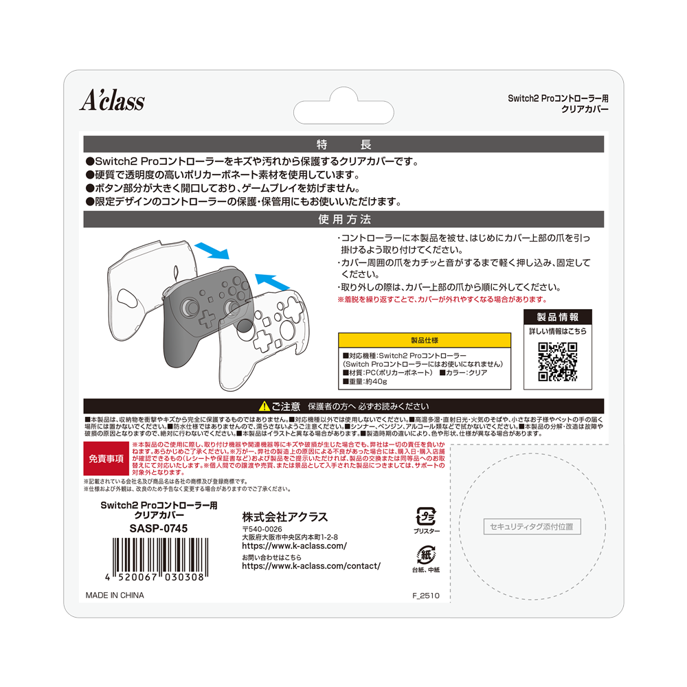 Switch2用プロコントローラーをキズや汚れから守る、硬質で透明の保護用カバーです。透明度の高い素材を採用し、デザインが損なわれることもございません。