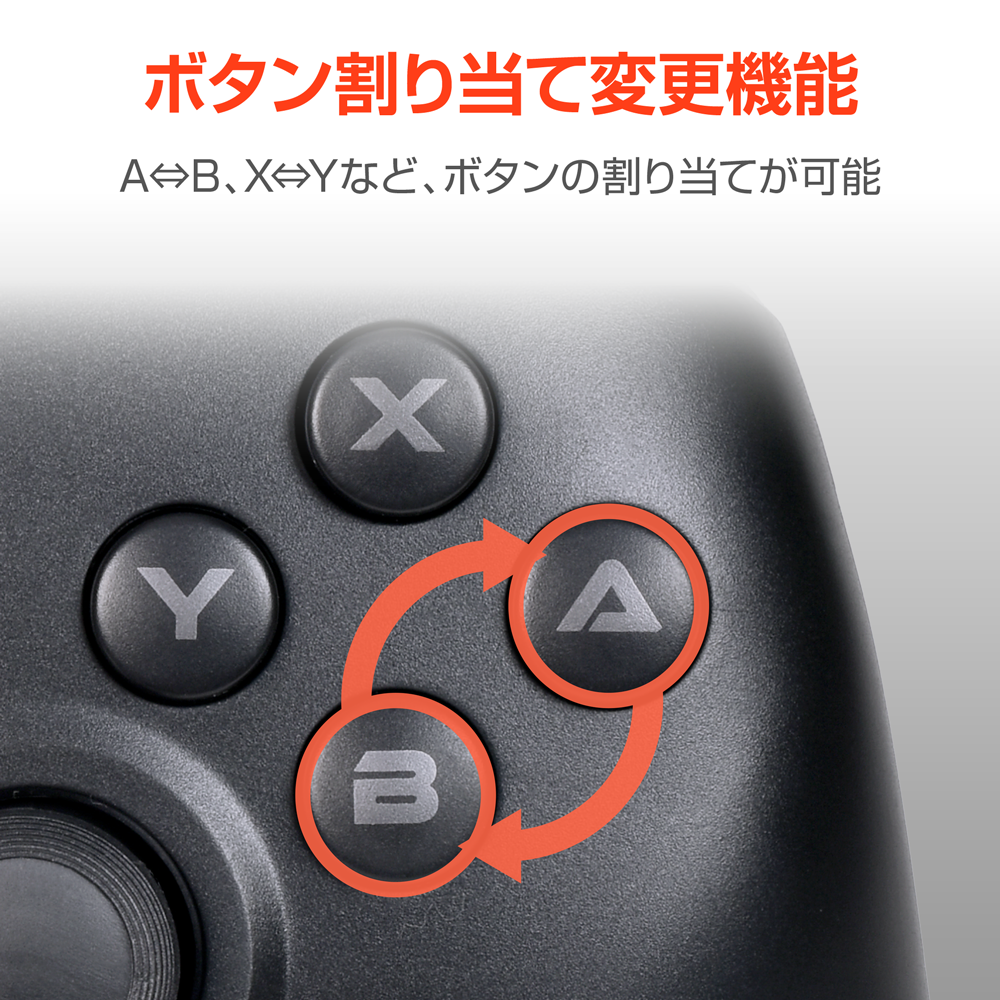 Aボタンを押したときにBボタンとして認識させるなど、ボタンの割り当て変更に対応。かんたんな操作で、各ボタンをカスタマイズできます。