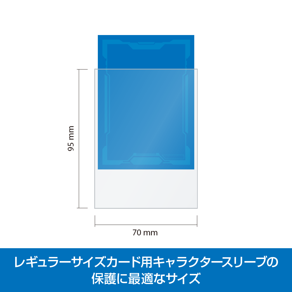 レギュラーサイズ(63×88mm)用キャラクタースリーブに重ねることができるスリーブで、カードとスリーブを傷や汚れから守ります。