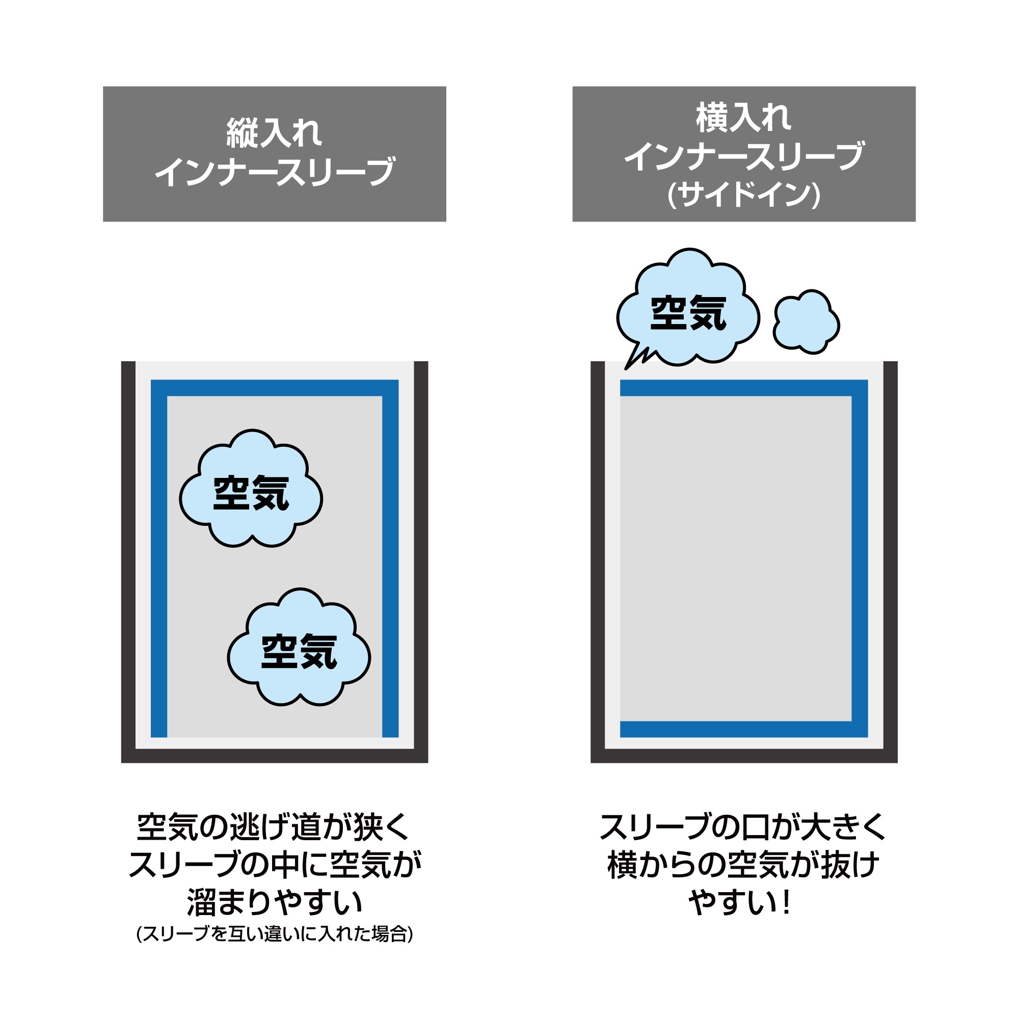 空気が抜けやすい横入れタイプ