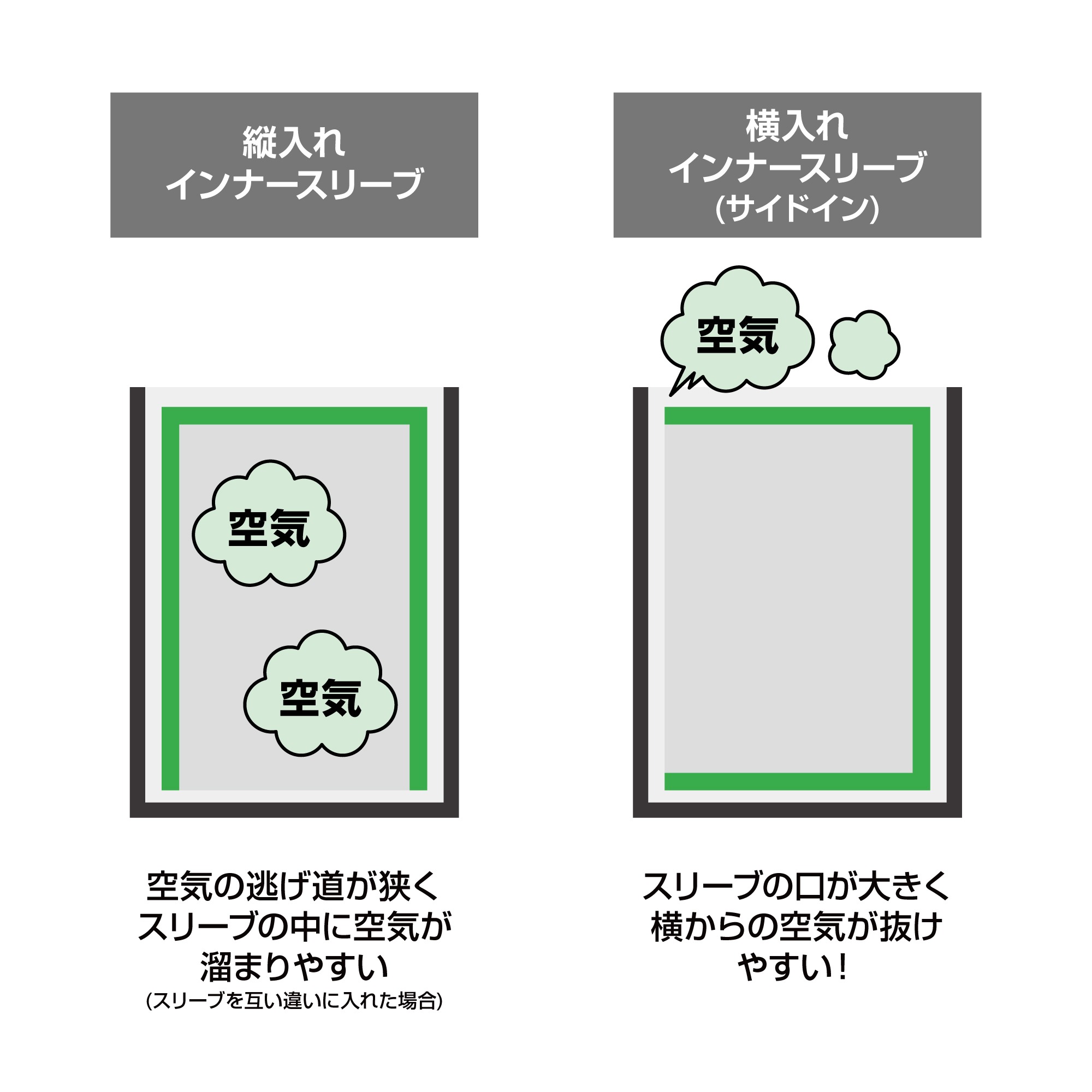 空気が抜けやすい横入れタイプ