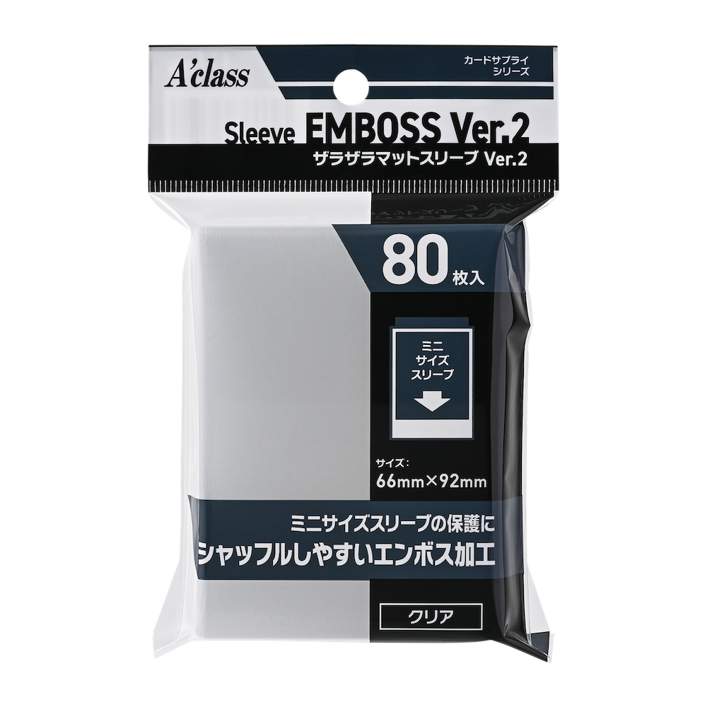 表面はクリア、裏面には凹凸のエンボス加工を施したフィルムを採用。キズが目立ちにくく、スリーブ同士を重ねた際の適度な滑りと優れた手触りで、ストレスなくシャッフルできます。