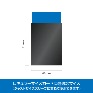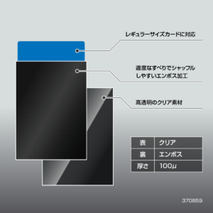 表面はクリア、カラー面には凹凸のエンボス加工を施したフィルムを採用。キズが目立ちにくく、スリーブ同士を重ねた際の適度な滑りと優れた手触りで、ストレスなくシャッフルできます。