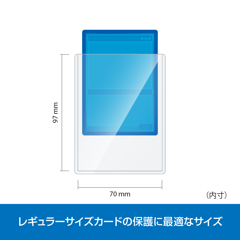 レギュラーサイズのカードをスリーブごと保護できる、縦入れの硬質ケースです。大切なカードを傷や汚れから守ります。