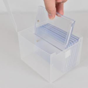 カードの保管や持ち運びに便利な、軽量な樹脂素材を使用したシンプルなカードケースです。