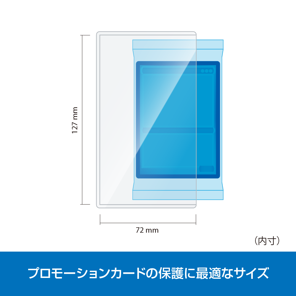 プロモーションカードなどを袋ごと保護できる、横入れの硬質ケースです。大切なカードを傷や汚れから守ります。