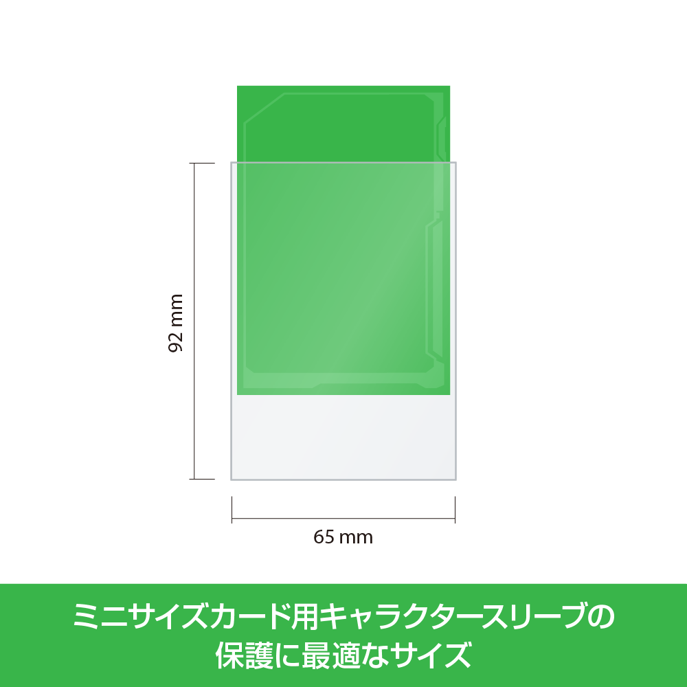 ミニサイズ(59×86mm)用キャラクタースリーブに重ねることができるスリーブで、カードとスリーブを傷や汚れから守ります。
